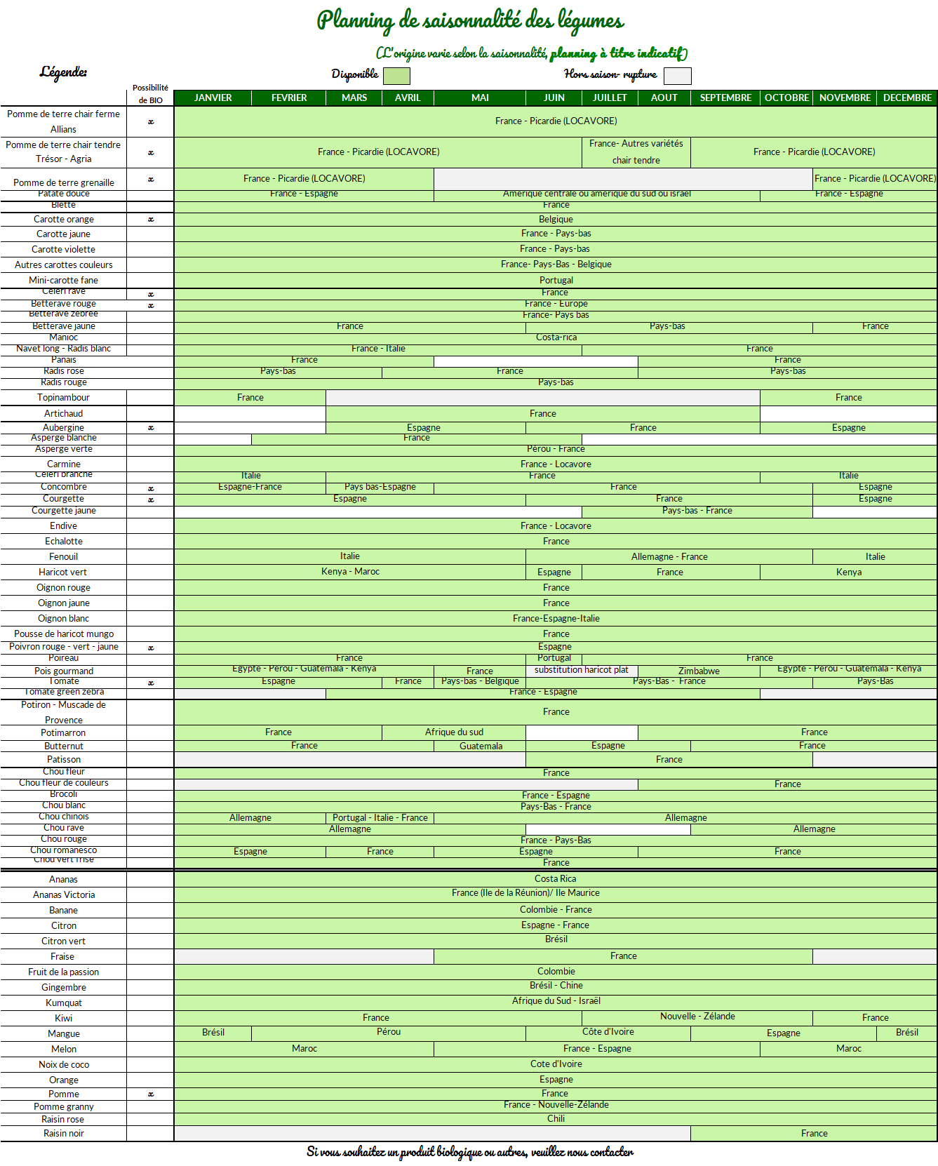 Vous trouverez dans cette rubrique la tableau de saisonnalité des produits qui est mis à jour régulièrement :